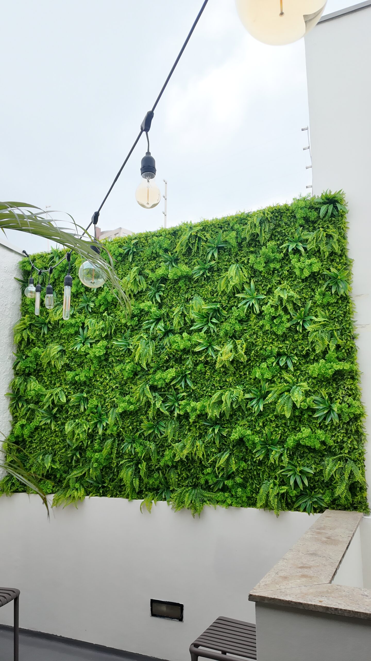 Ideais para fachadas, varandas, áreas de lazer e espaços comerciais abertos, os painéis externos valorizam a arquitetura com um toque natural e sofisticado, sem a necessidade de manutenção ou sistemas de irrigação.