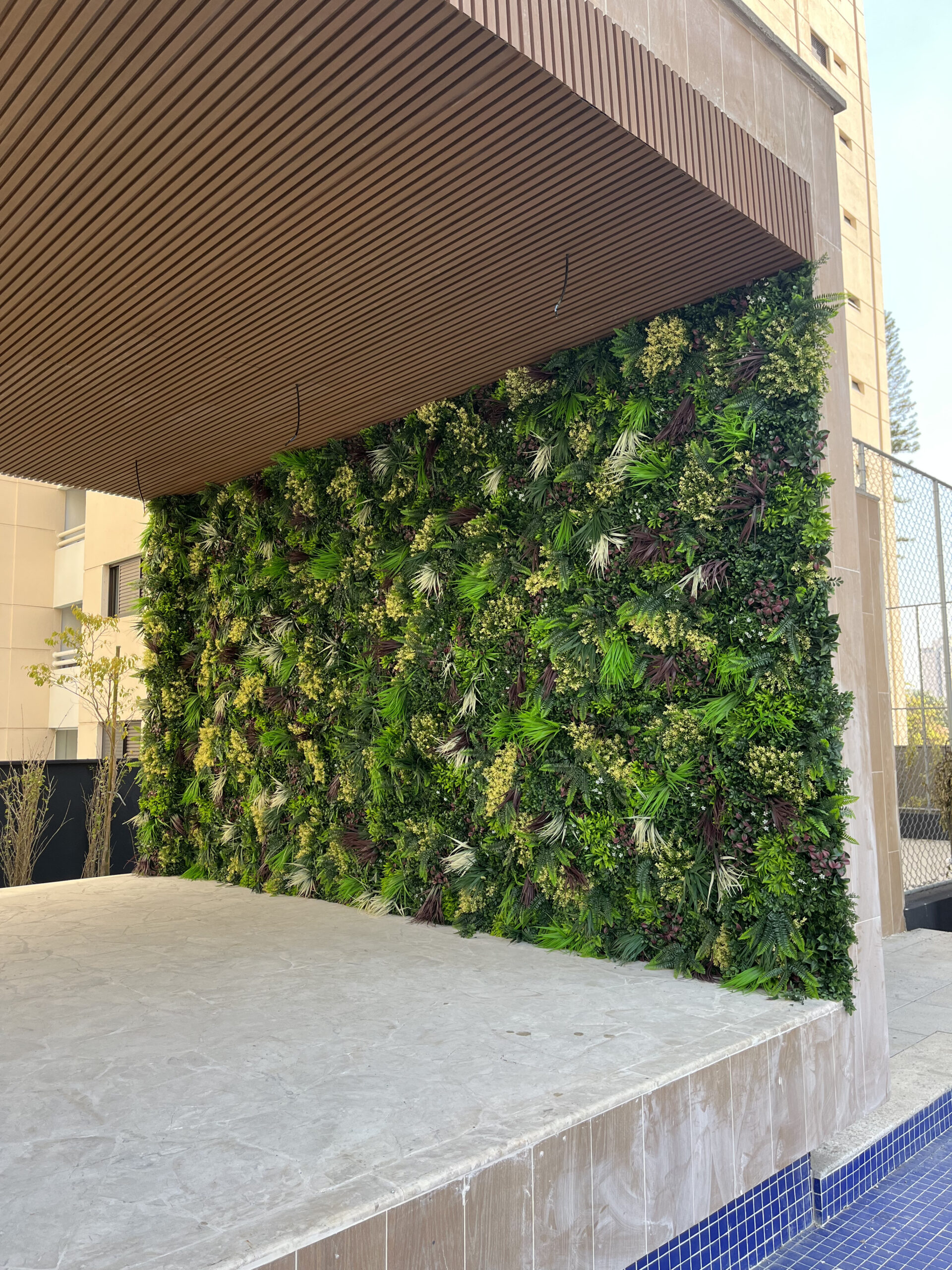 Os Jardins Verticais Artificiais Externos da Muda foram desenvolvidos para unir beleza, resistência e durabilidade em áreas expostas ao sol e às variações climáticas.