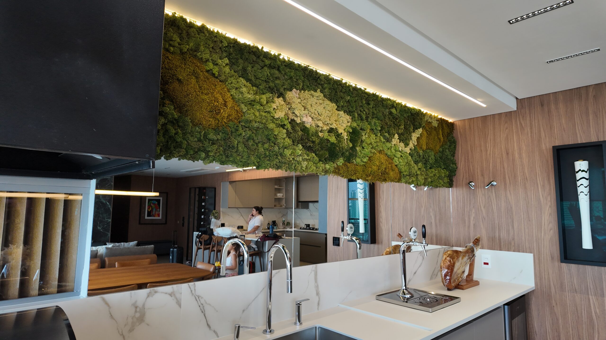 Cada lote é colhido manualmente com total respeito ao meio ambiente e estabilizado com solução natural e não tóxica. O resultado é um revestimento natural e sofisticado de longa durabilidade, perfeito para decoração de interiores e projetos biofílicos.