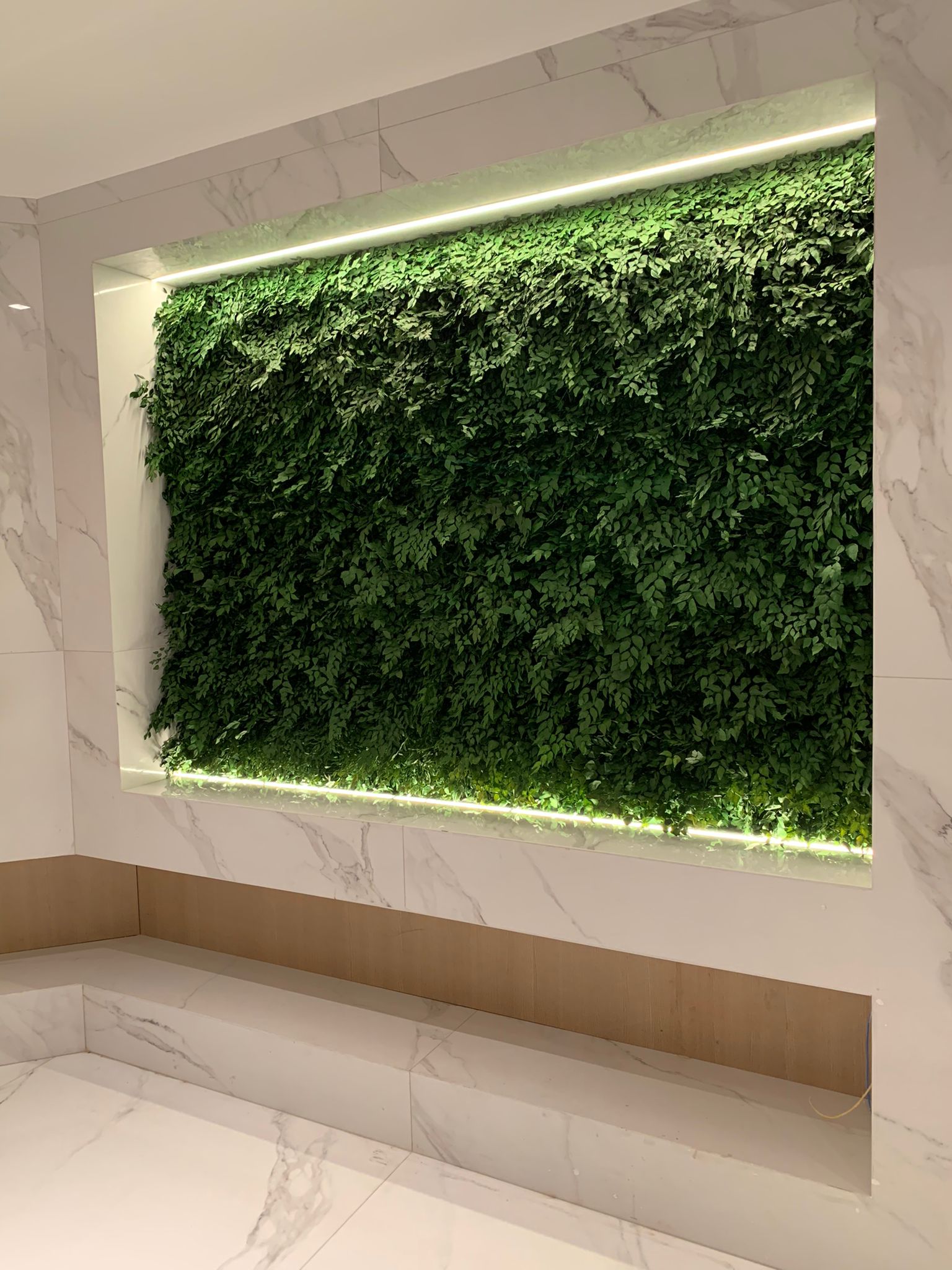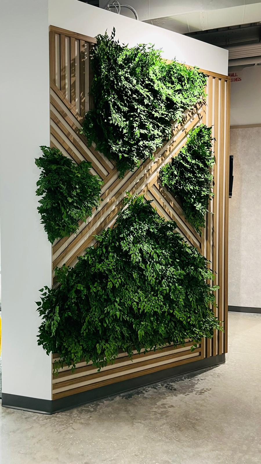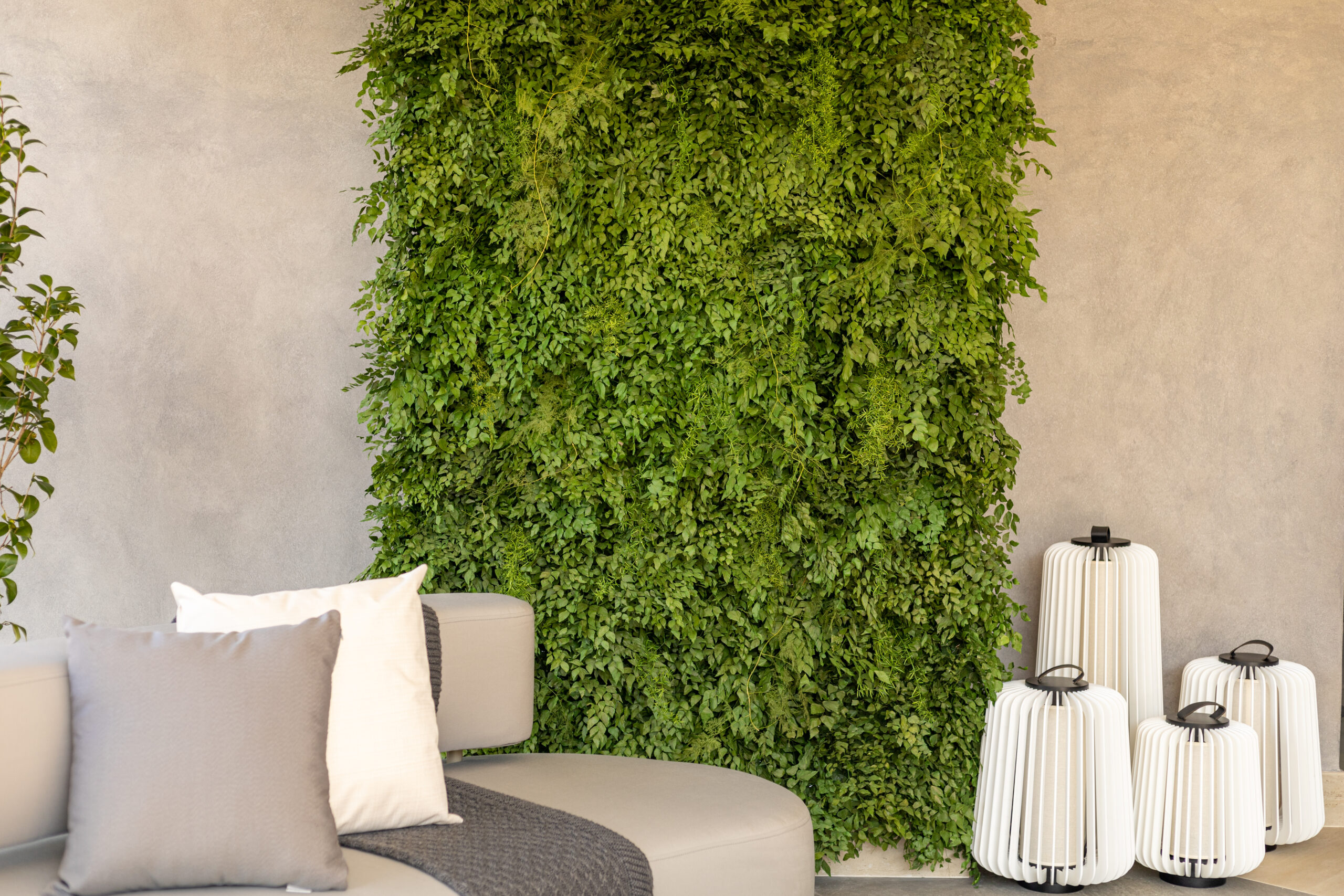 Os Jardins Verticais Preservados da Muda unem sofisticação estética e praticidade em uma solução natural e duradoura para decoração de interiores. Produzidos a partir de plantas naturais submetidas a um processo artesanal de preservação e tingimento, mantêm a textura, o volume e a beleza original da vegetação por vários anos, sem necessidade de irrigação, poda ou luz solar.
