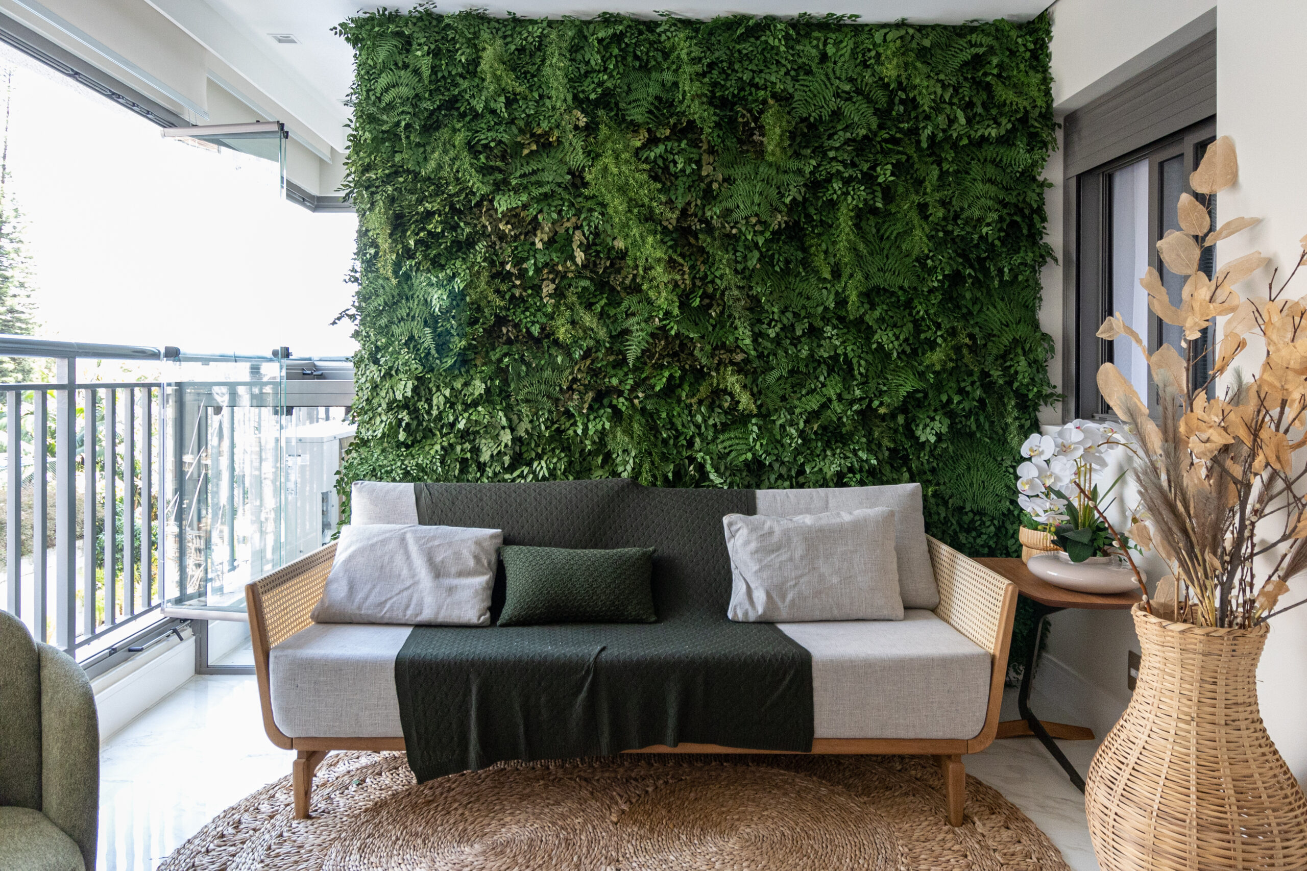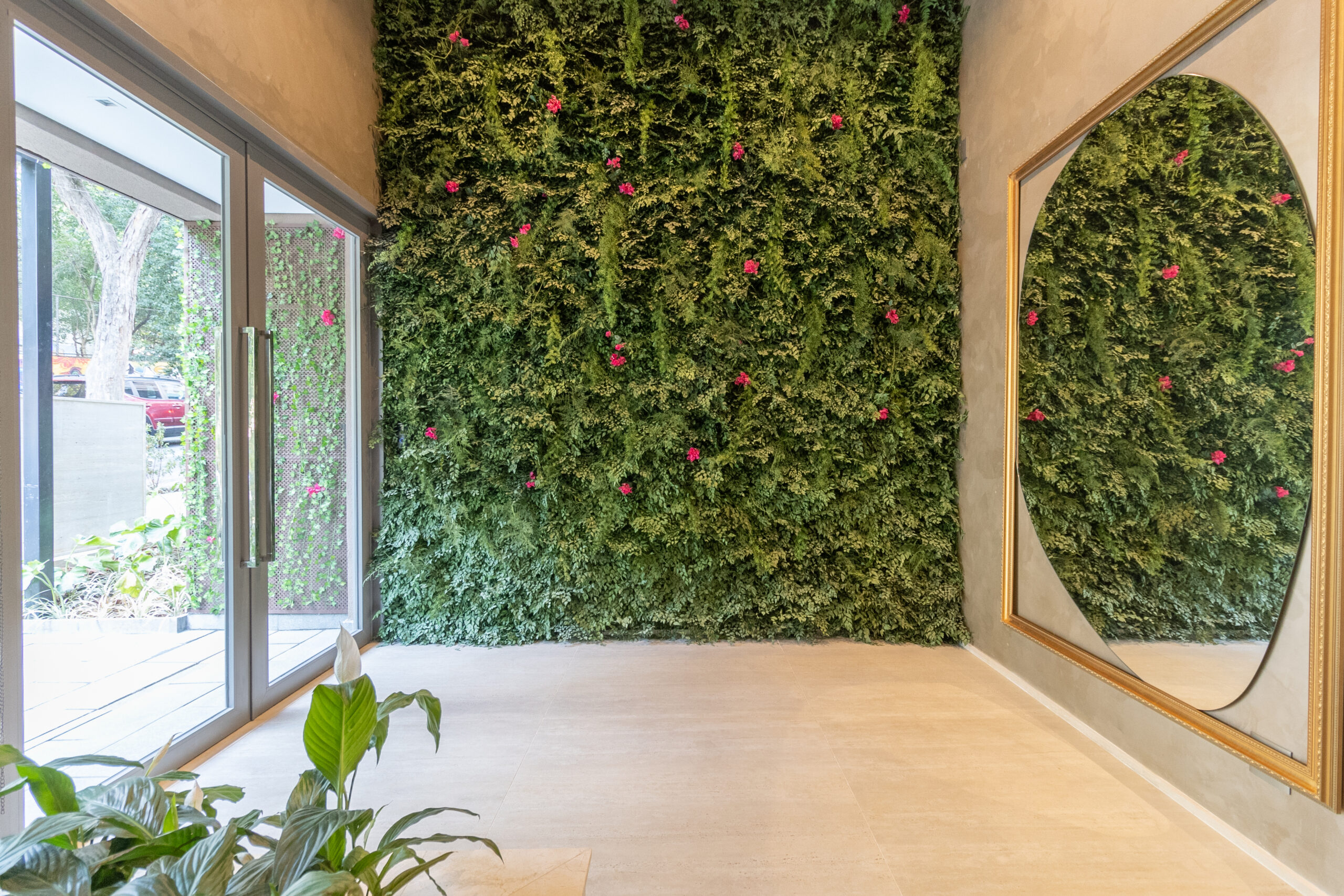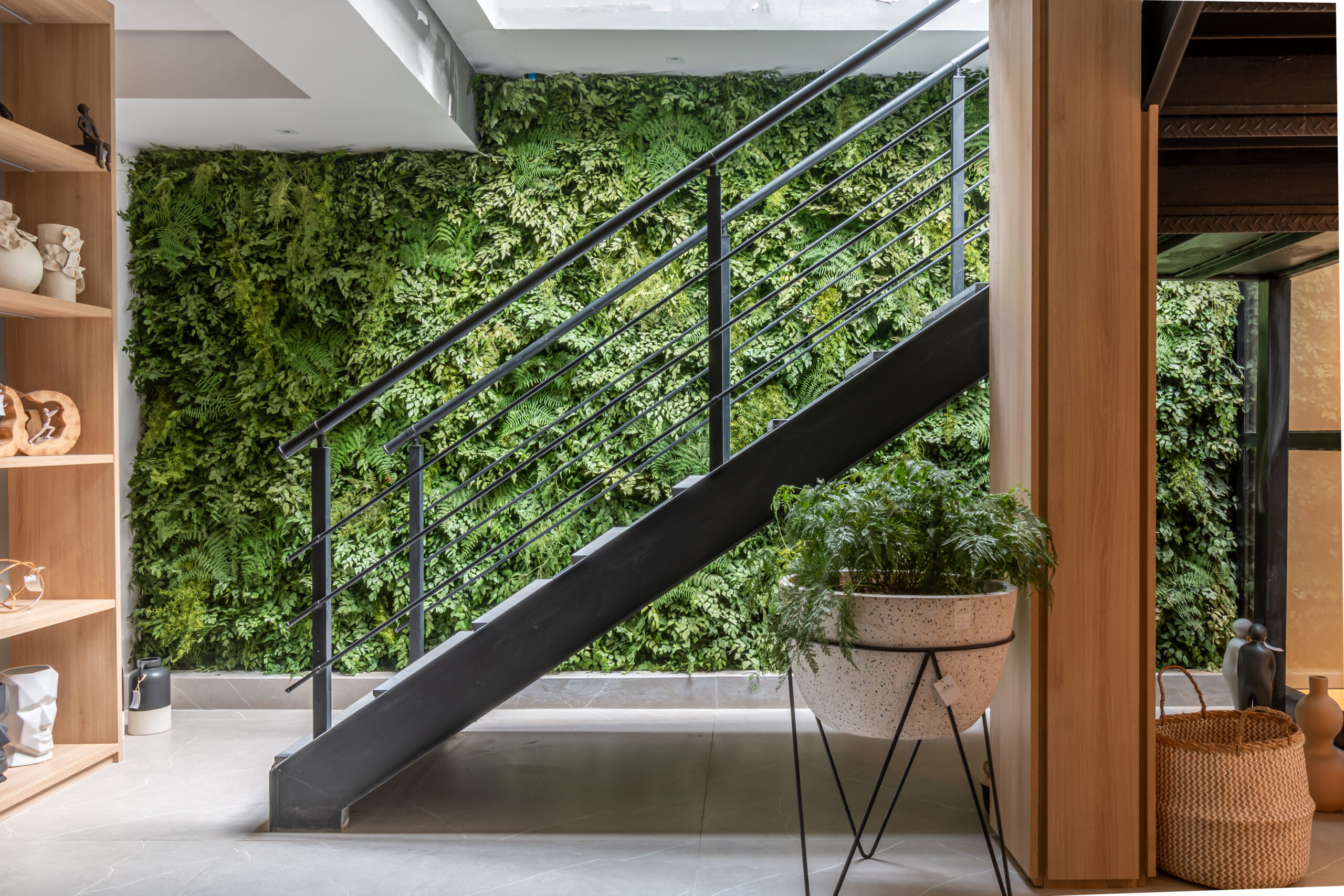 Os Jardins Verticais Preservados da Muda unem sofisticação estética e praticidade em uma solução natural e duradoura para decoração de interiores. Produzidos a partir de plantas naturais submetidas a um processo artesanal de preservação e tingimento, mantêm a textura, o volume e a beleza original da vegetação por vários anos, sem necessidade de irrigação, poda ou luz solar.