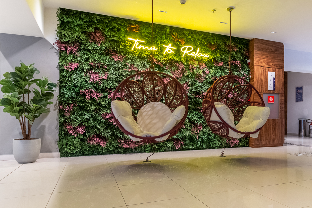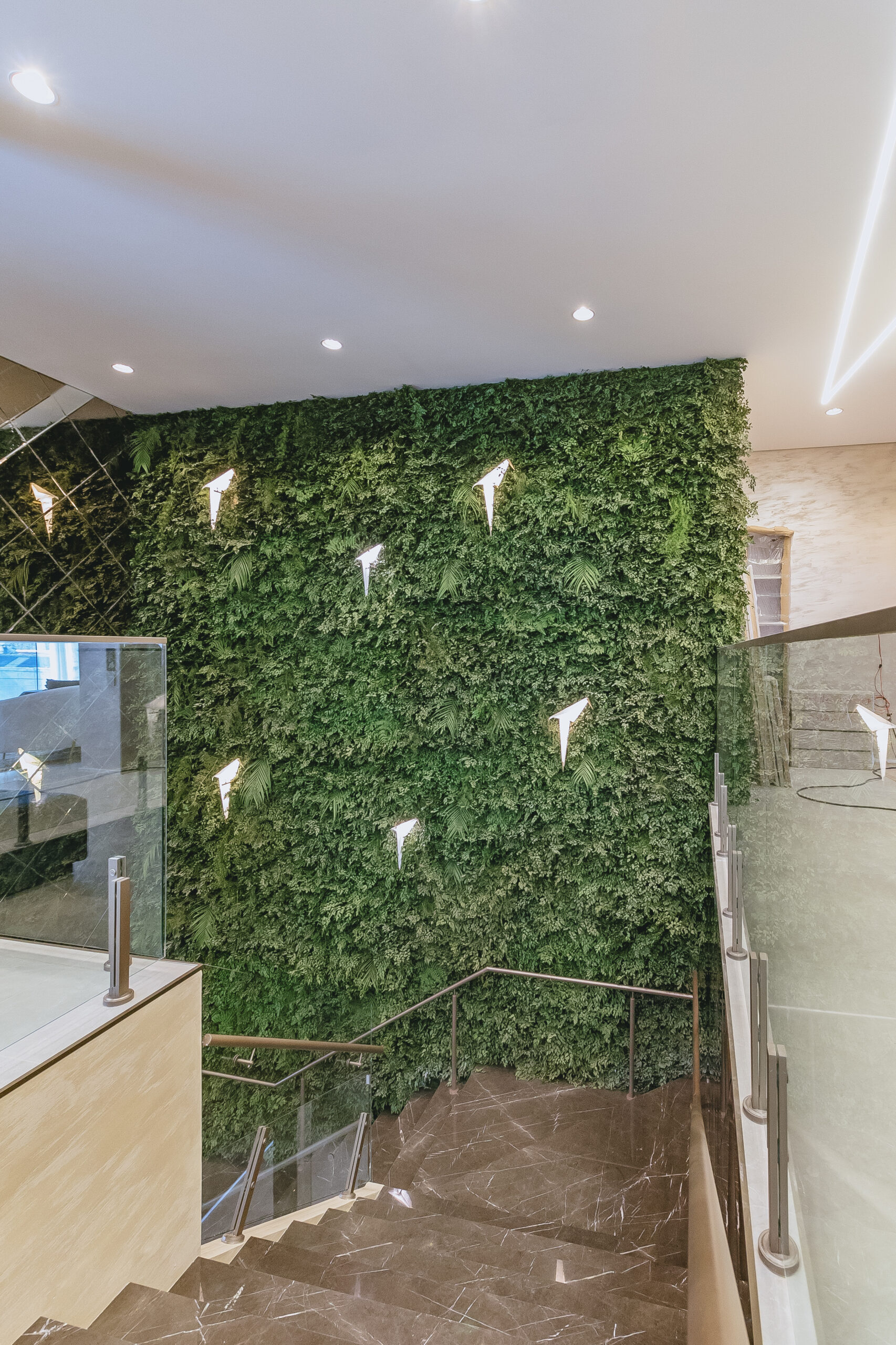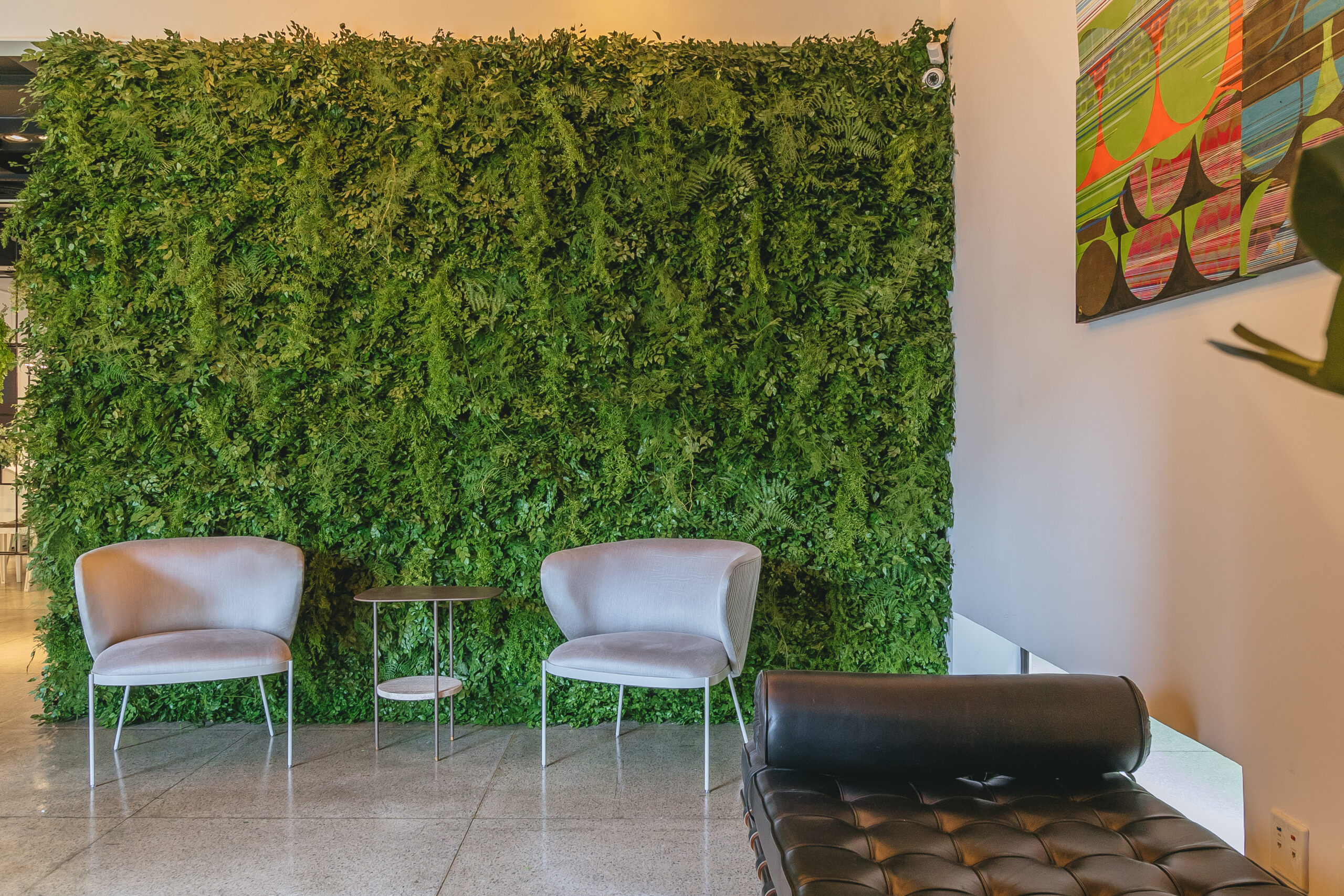 Graças ao formato modular, a instalação é ágil, limpa e versátil, podendo ser aplicada em paredes, painéis e superfícies diversas. O resultado é uma parede verde natural, livre de manutenção e com acabamento impecável, ideal para escritórios, residências, hotéis, restaurantes e ambientes comerciais.